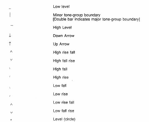 The terms fall, rise, and level describe pitch movernents which begin on the vowel of the accented syllable (or in the case of a falling diphthong, on the first element of the diphthong). Any pitch movernents before this point are ignored in this terminology.